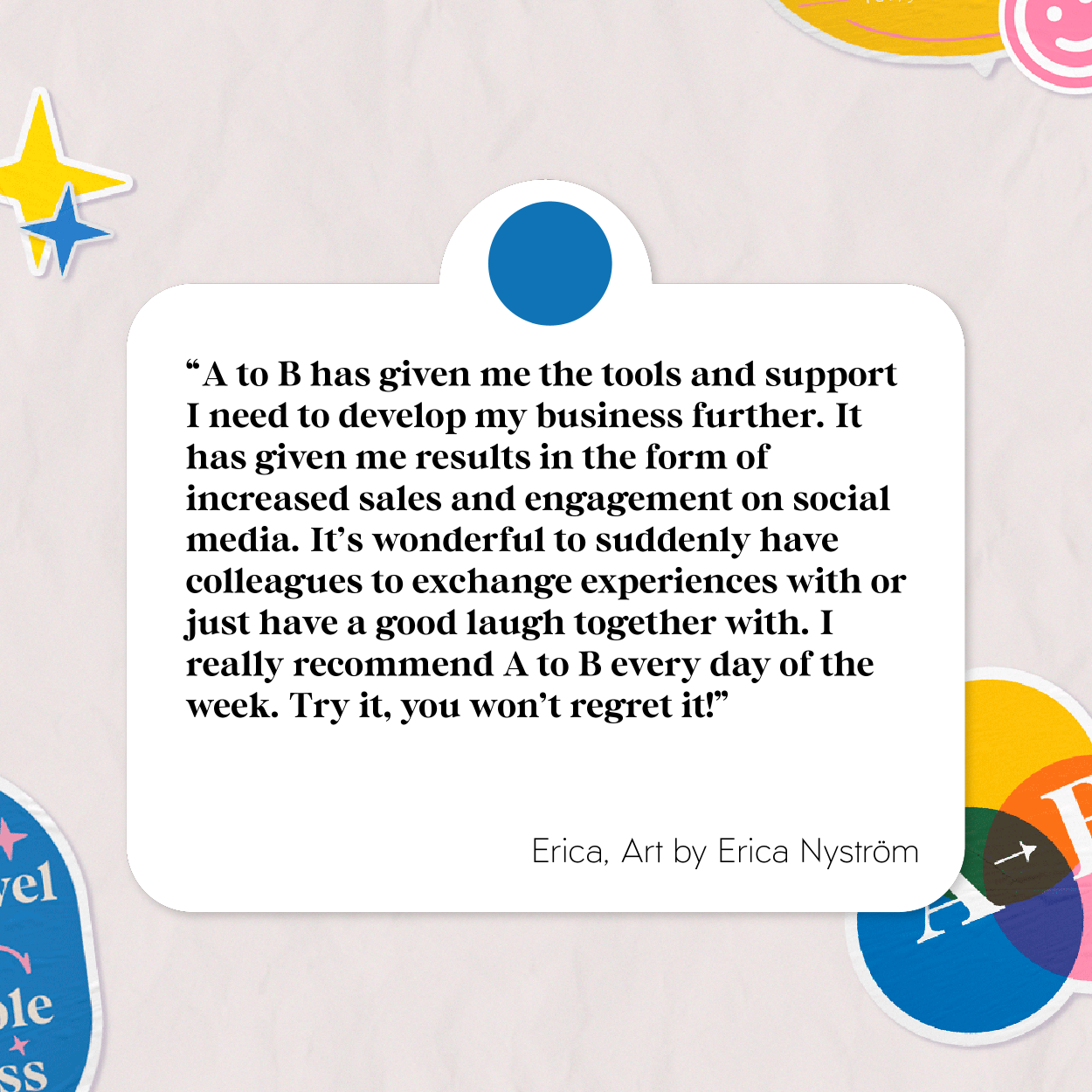 It gives you access to networking spaces and collaboration opportunities you otherwise might not have had! Art to Business is built as a community of, what we call “artist colleagues”. We believe that you can go so much further by seeing each other as colleagues instead of competitors.